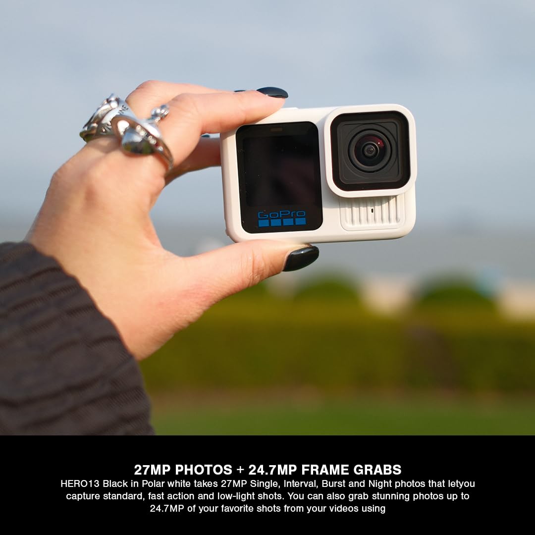 Best-in-Class 5.3K Video: 5.3K video delivers breathtaking image quality with 91% more resolution than 4K and an incredible 665% more than 1080p. HERO13 Black in polar white captures the action with crisp detail and exacting image quality so any shot with any lens will look amazing. 5.3K video also lets you grab stunning photos up to 24.7MP from your footage using the GoPro Quik app.